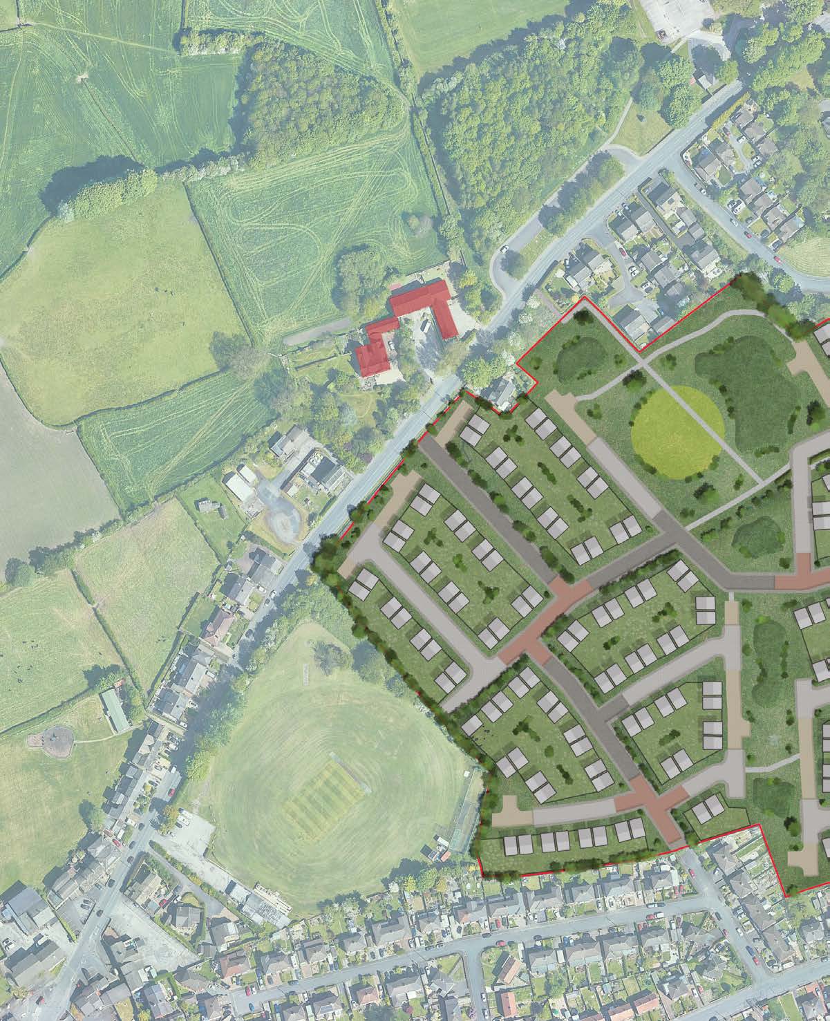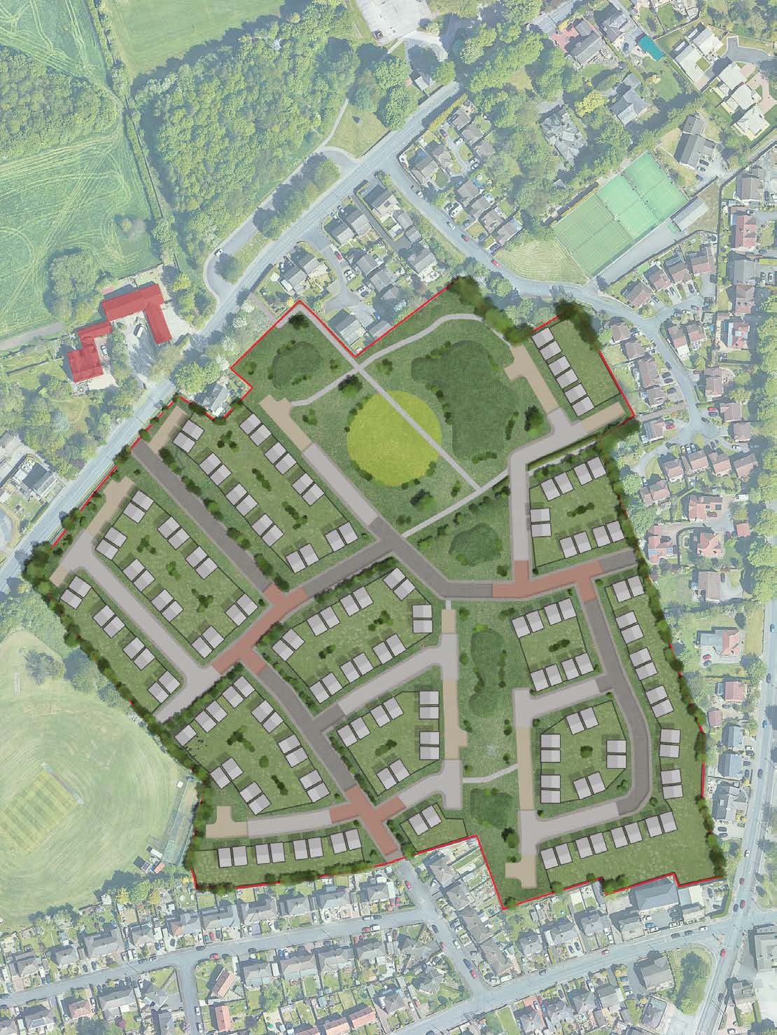 The masterplan delivers 180 to 200 homes across 5.2 hectares, with the remaining 2.4 hectares dedicated to green infrastructure. A green corridor runs through the centre, separating Roberttown and Liversedge and preserving their distinct identities. This corridor provides public open space, a Local Equipped Area for Play, wildflower meadows, and attenuation basins following the natural topography.